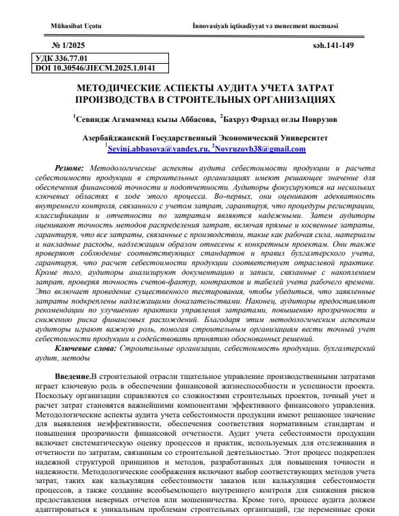 Nömrə. 1 (2025): Innovative Economy and Management 2025 Issue 1