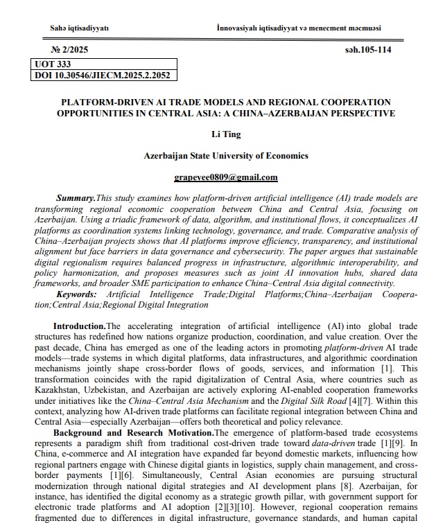 Nömrə. 2 (2025): Innovative Economy and Management 2025 Issue 2