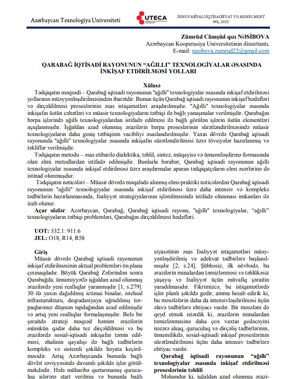 Registered with the Ministry of Justice of the Republic of Azerbaijan: Register No. 4155 Published by the decision of the Scientific Council of the Azerbaijan University of Technology The journal is included in the following international scientific databases: International Scientific Indexing (ISI), International Institute of Organized Research (I2OR), Journal factor, Cite factor, Academic Scientific Journals, Scientific Indexing Services